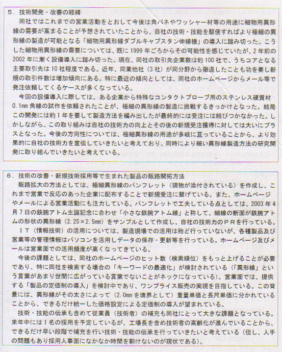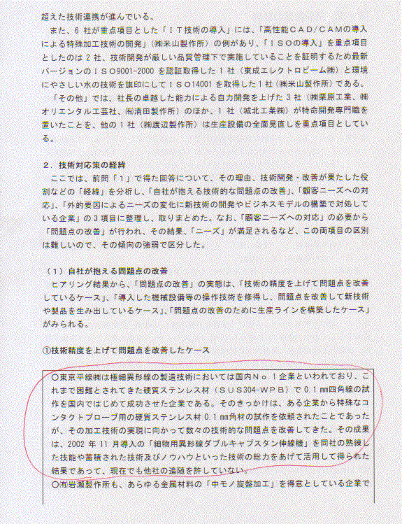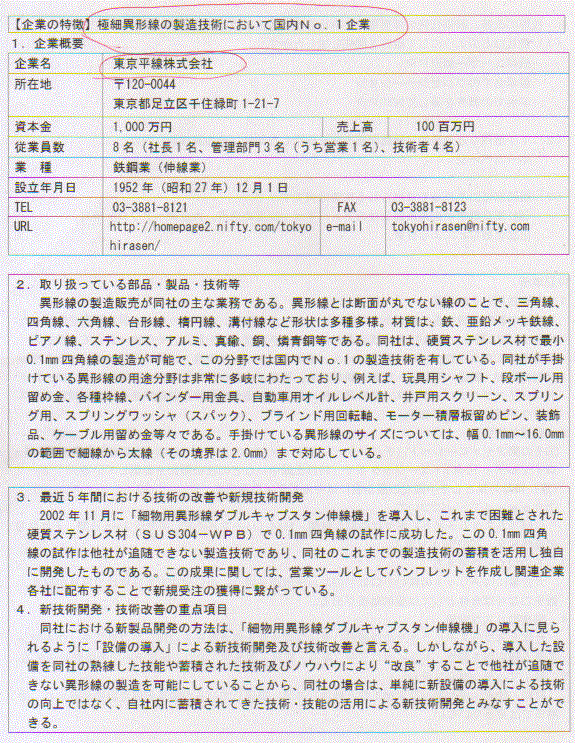2005.2月 財団法人 中小企業総合研究機構が調査した、技術力・製品開発力のある 中小企業の成功事例として紹介されました